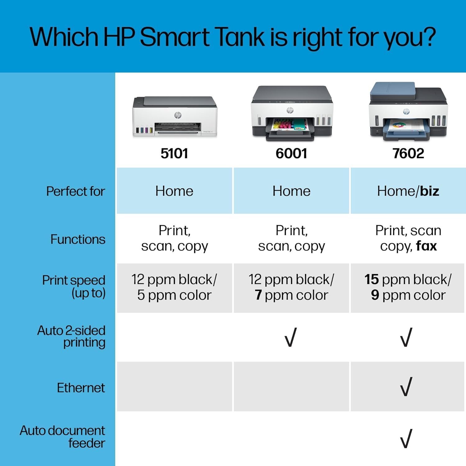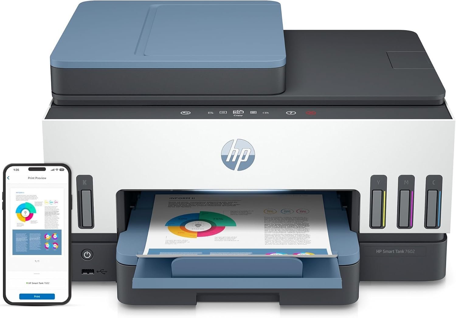 HP Smart Tank 7602 Wireless All-in-One Ink Tank Printer with 2 years of ink included, Print, scan, copy, fax, Best for home, Refillable ink tank (28B98A)